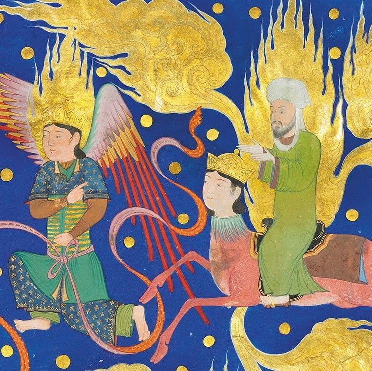 Focusing on some specific literary themes, we start with a genre of visionary texts and images from the 15th century on the Prophet’s Isra’ and Mi’raj or Night Journey in Expressing the Inexpressible: Painting the Ascension. Recorded in some of the most beautiful passages of the Qur’an, this was the most mysterious and esoteric of the revelations bestowed upon the Messenger of God, in which he was given to experience the entirety of cosmic creation within the space of one night.